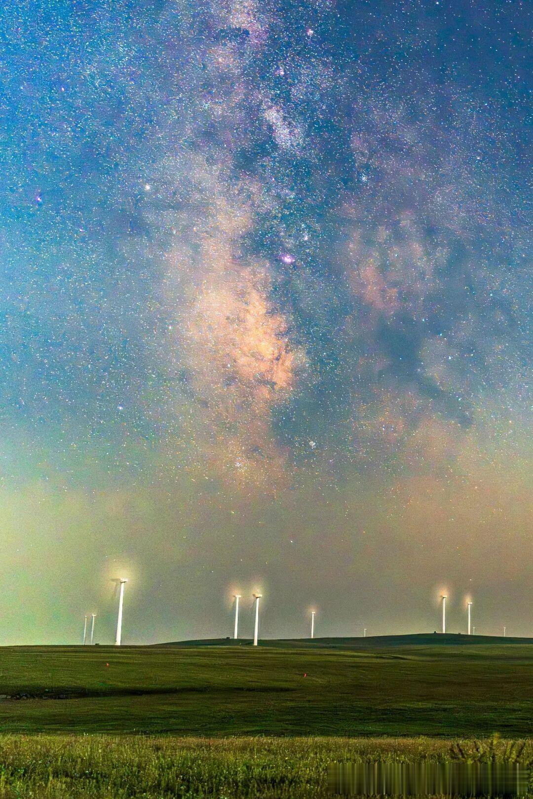 辉腾锡勒草原花海、牛群、风车,宛若童话世界。