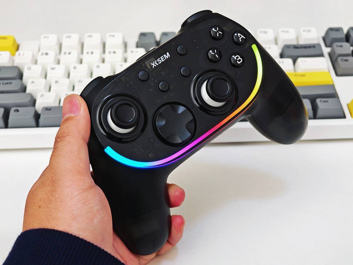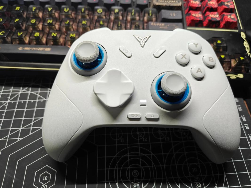 支持蓝牙、有线、2.4G三模连接,2.4G采用自研接收器,信号稳定,回报率1000Hz,延迟接近零,支持Xbox、PC、安卓平台,不支持NS,无多余灯效,整体性能够用。