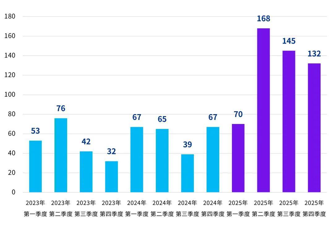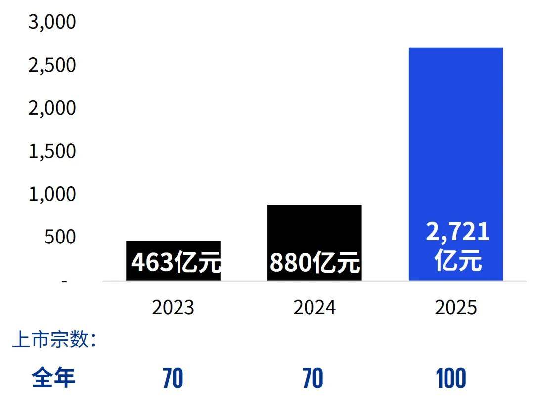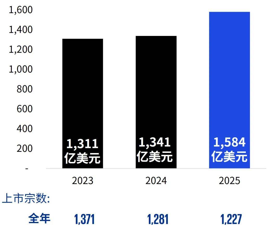 图1:全球IPO活动 (2023年 – 2025年) (亿美元)
