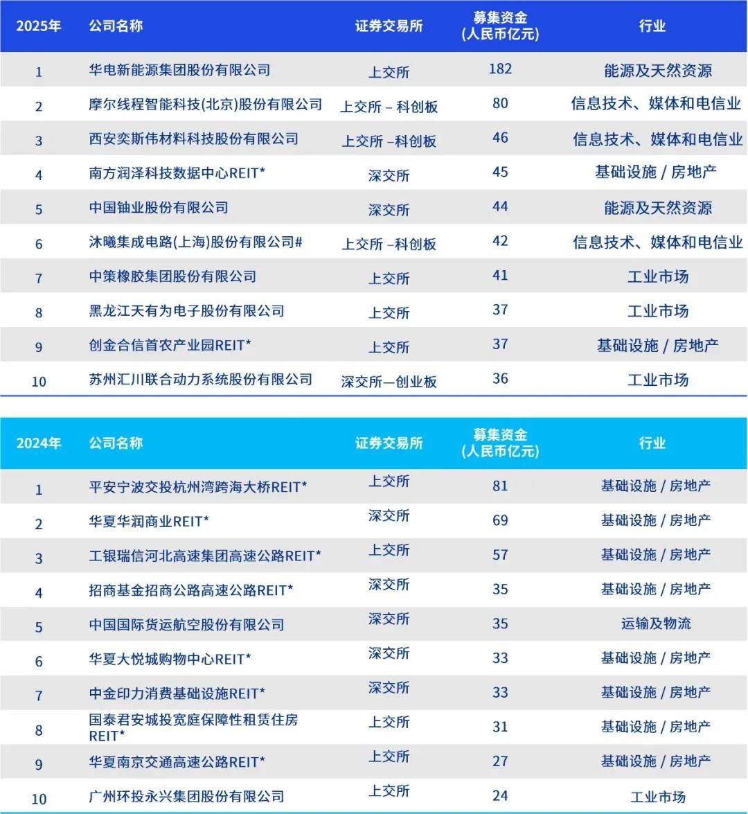 募资总额人民币1,637亿元,与2024年相比增加23%130宗IPO,与2024年相约十大IPO募资额占募资总额的36%,2024年占32%2025年影响A股IPO市场的因素: