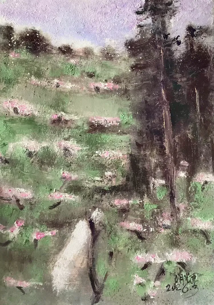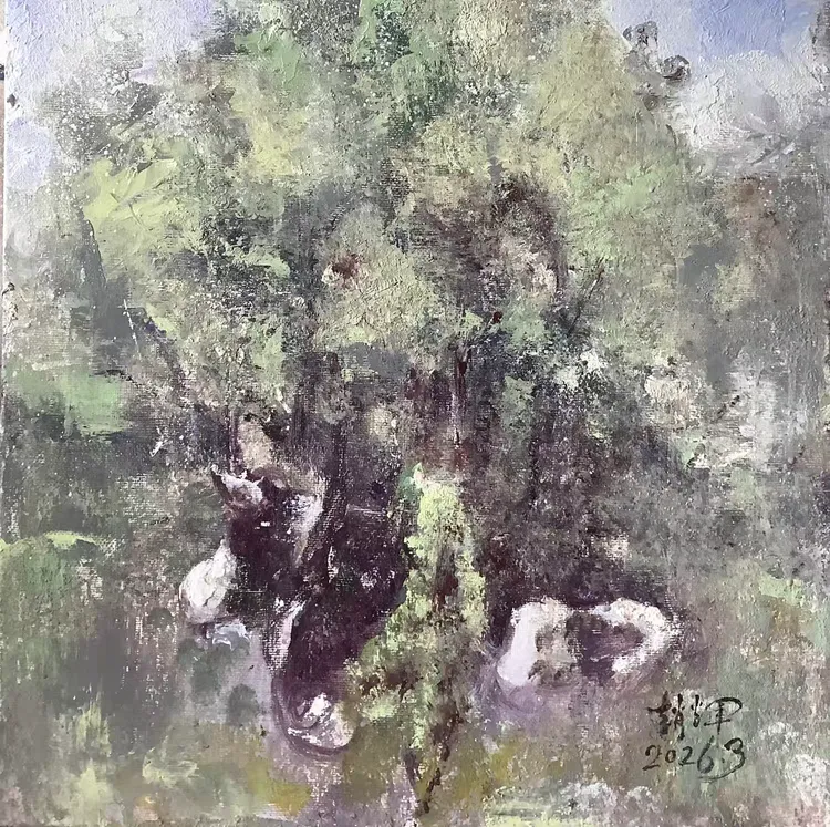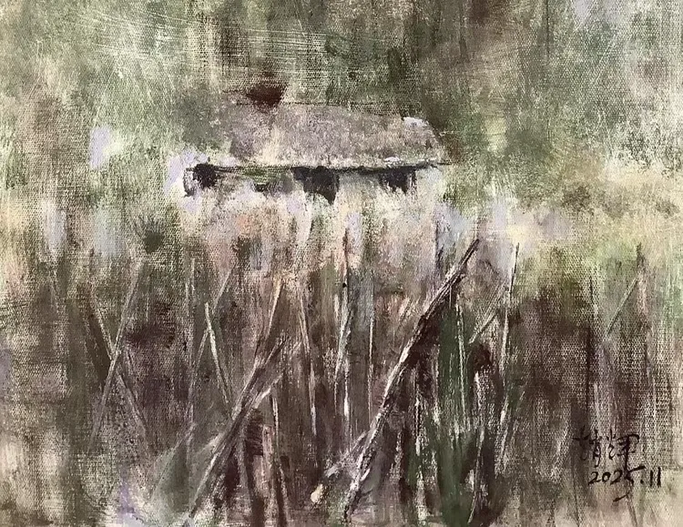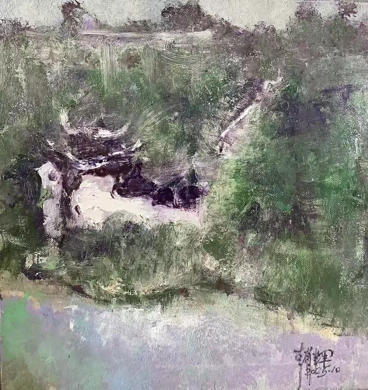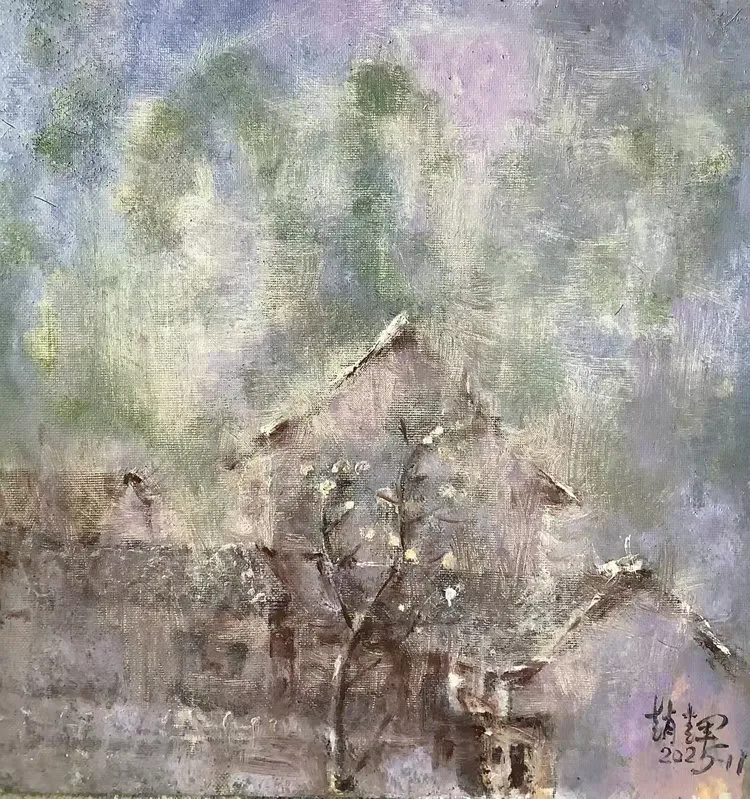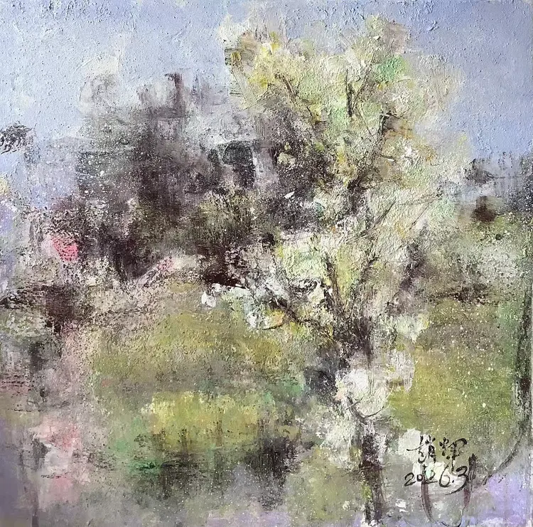 观赵辉老师之作,色彩温润雅致,意境空灵悠远,既有油画的厚重质感,又不失东方水墨的写意神韵。画面层次细腻、气韵生动,乡野山河在他笔下尽显诗意柔情,每一笔都饱含对自然的深情与对艺术的赤诚,格调高雅、意境深远,极具艺术感染力与收藏价值。