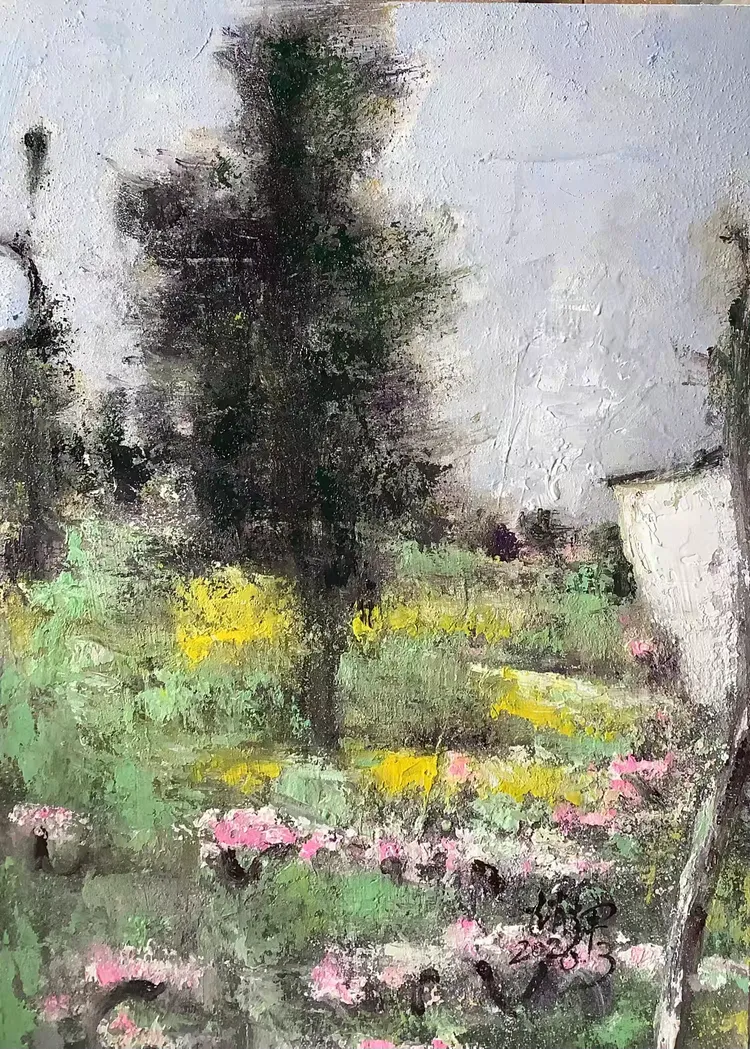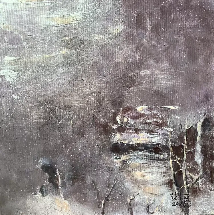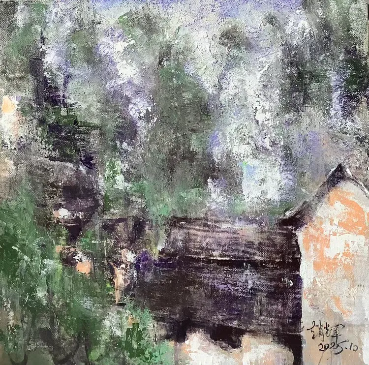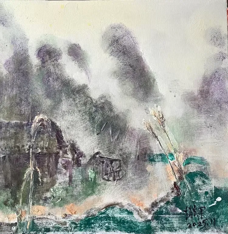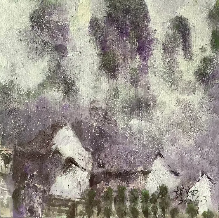 观赵辉老师之作,色彩温润雅致,意境空灵悠远,既有油画的厚重质感,又不失东方水墨的写意神韵。画面层次细腻、气韵生动,乡野山河在他笔下尽显诗意柔情,每一笔都饱含对自然的深情与对艺术的赤诚,格调高雅、意境深远,极具艺术感染力与收藏价值。