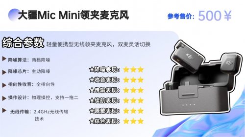 品牌主打轻量化实用设计,领夹麦兼顾便携性与音频稳定性,适合单人Vlog、手机短视频及大疆设备生态用户日常创作场景。