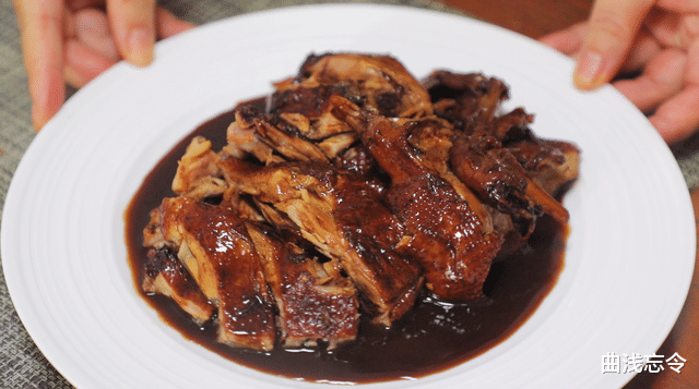 7、装盘:晾凉后的鸭子肉质更紧实,分切的时候先把鸭翅和鸭腿分割下来,鸭身切块摆盘,再把鸭腿和鸭翅切块摆放在鸭身之上。最后淋上卤汁即可。