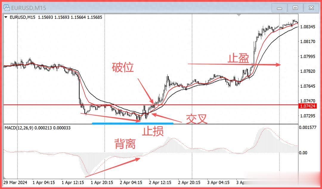 (3)k线图上1.07424是明显的水平压力,k线上破进场