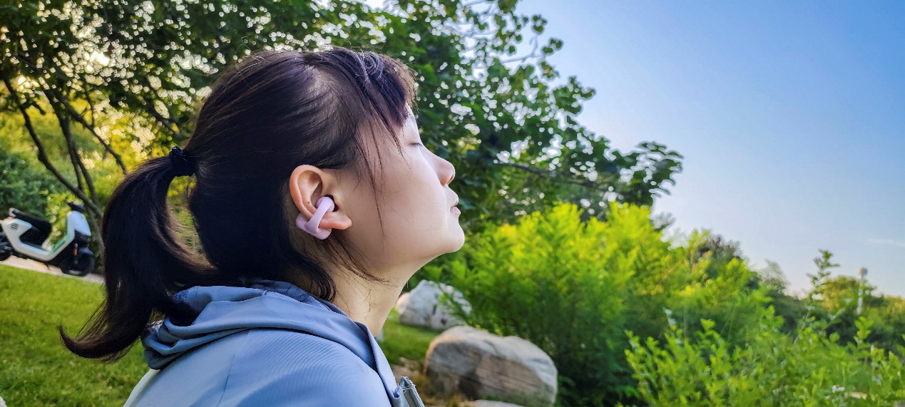 根据我日常使用蓝牙耳机的经验来说,入耳式或半入耳式的耳机,对于我来说,佩戴牢固度不高,尤其是运动时,总是容易掉落,而且佩戴时间久了,耳部也容易出现疼痛不适的现象。sanag塞那Z51S Pro Max开放耳夹式蓝牙耳机在佩戴方式上选择了耳夹式,记忆硅胶灵动环设计,更加契合耳廓工学设计,让耳朵360°均匀受力,可以将耳机牢牢固定在耳朵上。整机重约12g,小巧玲珑,即便长时间佩戴后耳部也不会出现疼痛不适的现象。开放式设计,避免耳道损伤的同时也使得户外运动更安全。