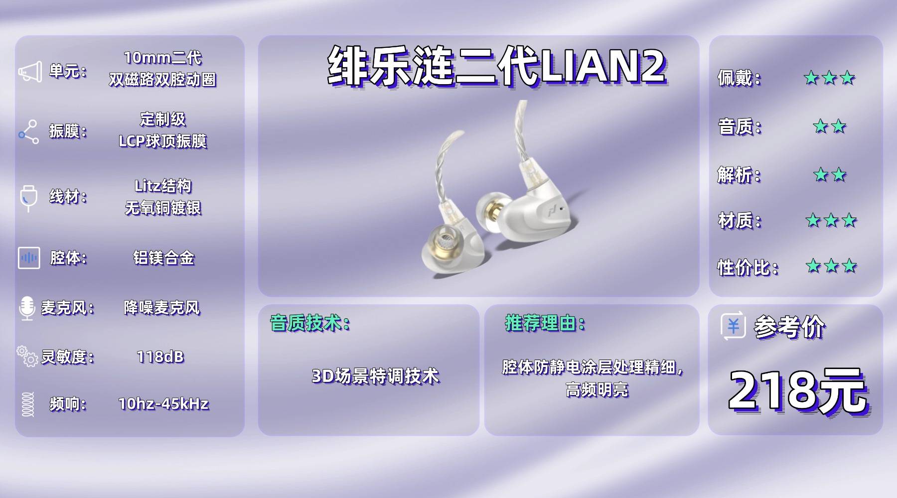 功能方面,LIAN2提供多种可切换调音,能根据不同耳塞和偏好调整风格,是同价位少见的可玩性亮点。自带降噪麦克风,在普通环境下通话清晰,不过在户外或嘈杂场景中,可能需要稍微靠近麦克风才能保持最佳收声。整体来看,LIAN2在声音、调音可玩性和日常通勤友好度上都有不错表现,是一款成本不高但易上手的入门级hifi耳机。
