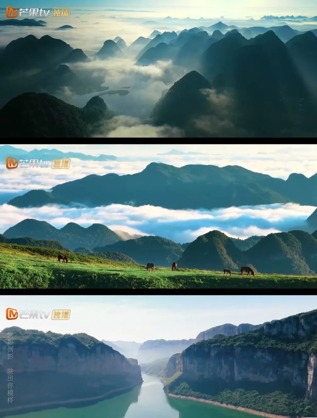 这个《乌蒙深处》的画面拍摄也太权威了,开屏就是美景暴击。山峰成林,云雾成绸,百里画廊,绿水萦绕,仿佛用尽与山水相关的赞美之词,都不够形容贵州的实景。就这个山清水秀 ,太养眼啦!