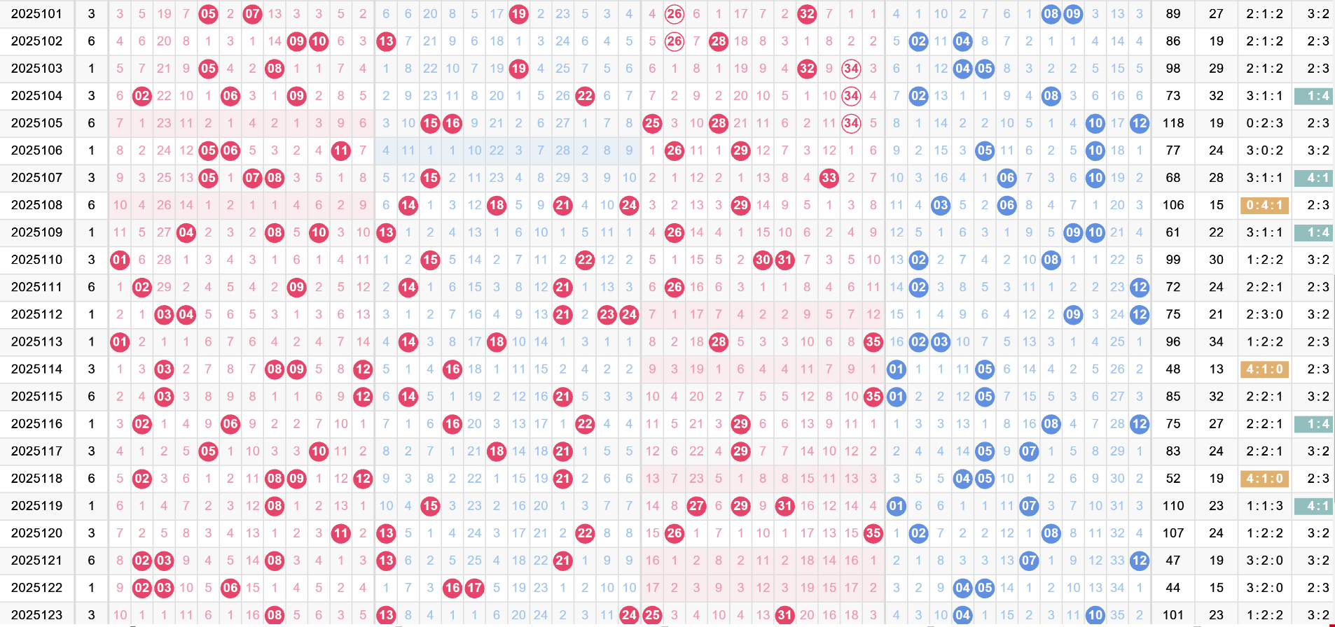 近二十期一等奖及追加情况如下 近二十期走势,遗漏,和值如下