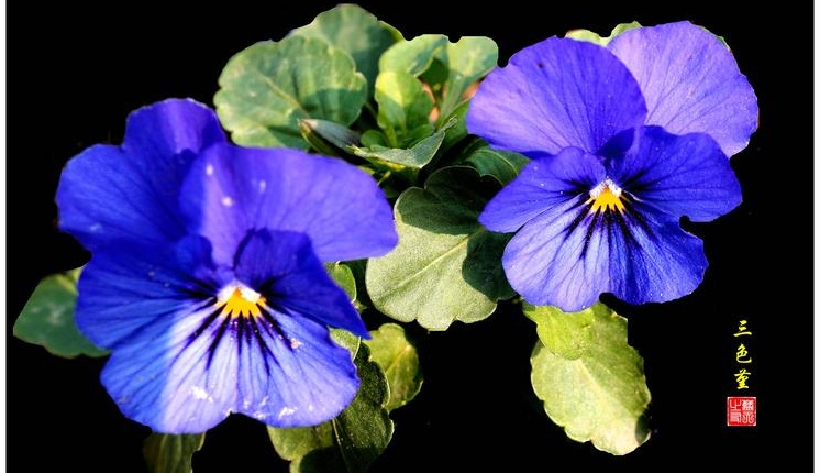 三色堇花影艺术展示中,利用投影的对比度可以突出三色堇的特征。比如亮色背景下的暗色三色堇。