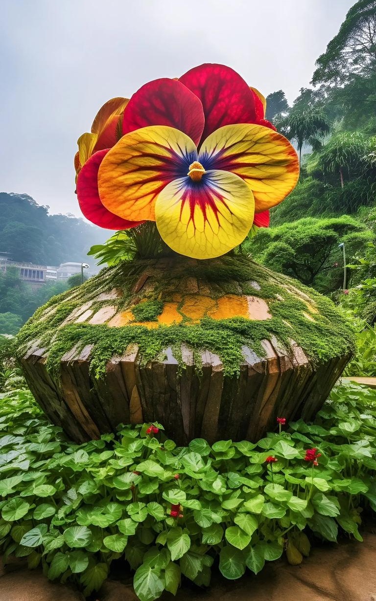 三色堇花影艺术展示中,不同的背景形状和花影效果搭配会带来新的视觉体验。比如三角形的背景和三色堇的三角形花影组合。