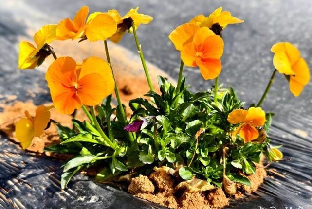 在不同地貌上种植三色堇也有不同。比如在山区梯田种植三色堇,土壤的保水性较好,三色堇可以长得比较茂盛。而在河边的沙质土壤种植,就需要特别注意水分和肥料的补充。有个在广西河边的花农,在沙质土壤种三色堇,经常要给花补充肥料和水分,不然花的长势就不好。