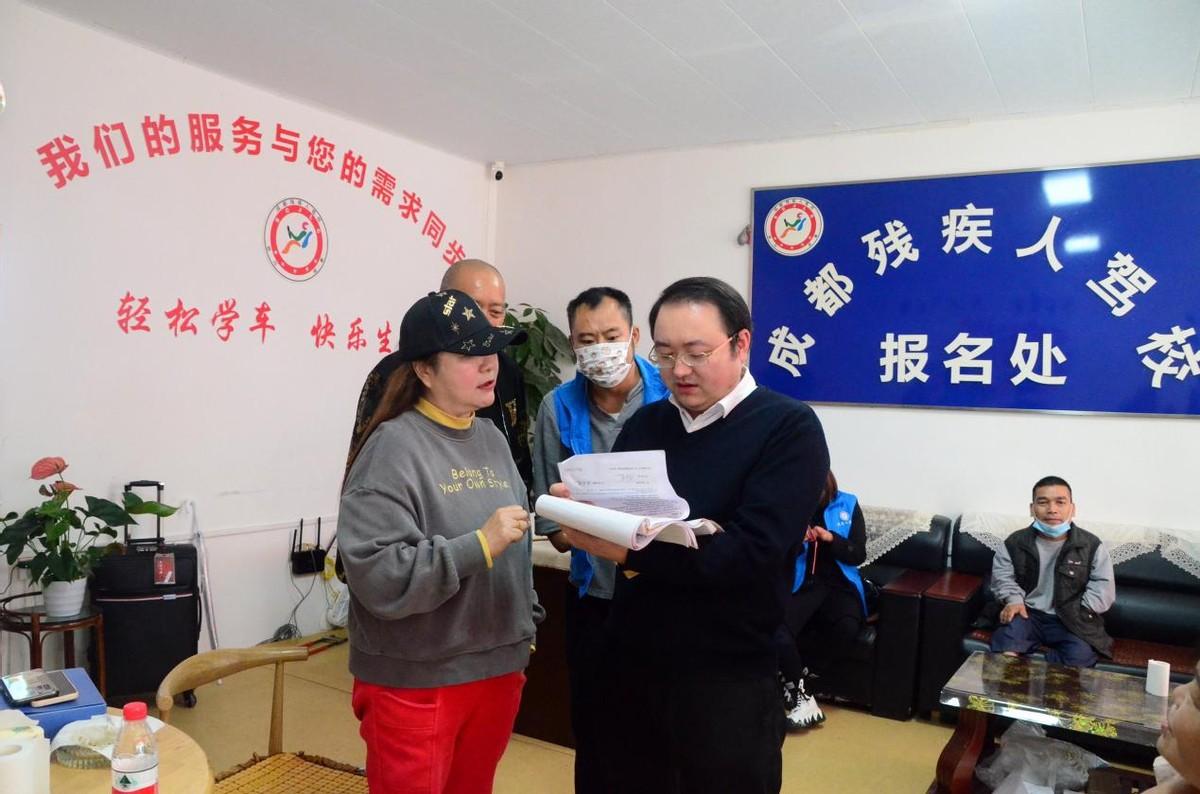 近日,四川省残疾人福利基金会理事长税益中来到成都市残疾人驾校指导工作,金牛区肢残人协会主席刘晓梅陪同参观。