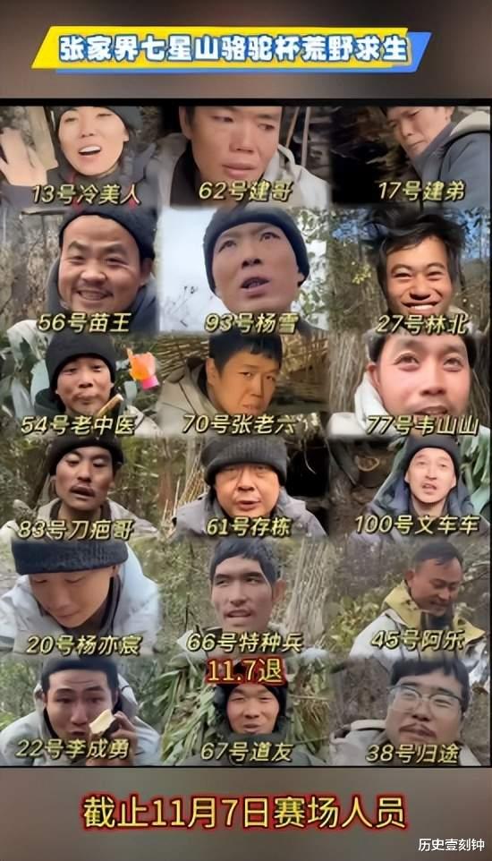 早在开赛时,100名参赛选手里,女选手数量为20,占据五比一,说实话这个数量比较庞大,然而不到一个月,女选手因各种原因陆续退赛,只有瘦成小河公主的冷美人还在坚持。