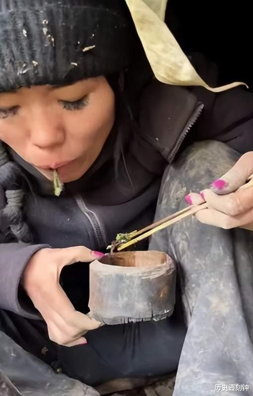 为了身体不出差错,她在小小窝棚里挖山药吃蜗牛,每天吃点纯天然有机简餐,把自己活成王宝钏,硬撑两个月。
