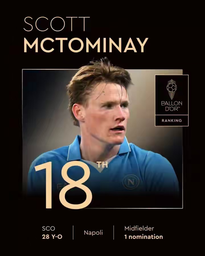 值得一提的是,去年夏天以3000万欧元转会加盟意甲冠军,那不勒斯的前曼联青训中场麦克托米奈在本届金球奖评选中位列第18位。麦克托米奈是穆里尼奥执教曼联时期从曼联青训提拔的球员,但在滕哈赫执教曼联期间,麦克托米奈的出场时间并不是很多,为了引进乌加特曼联只好忍痛割爱,将麦克托米奈出售给那不勒斯。