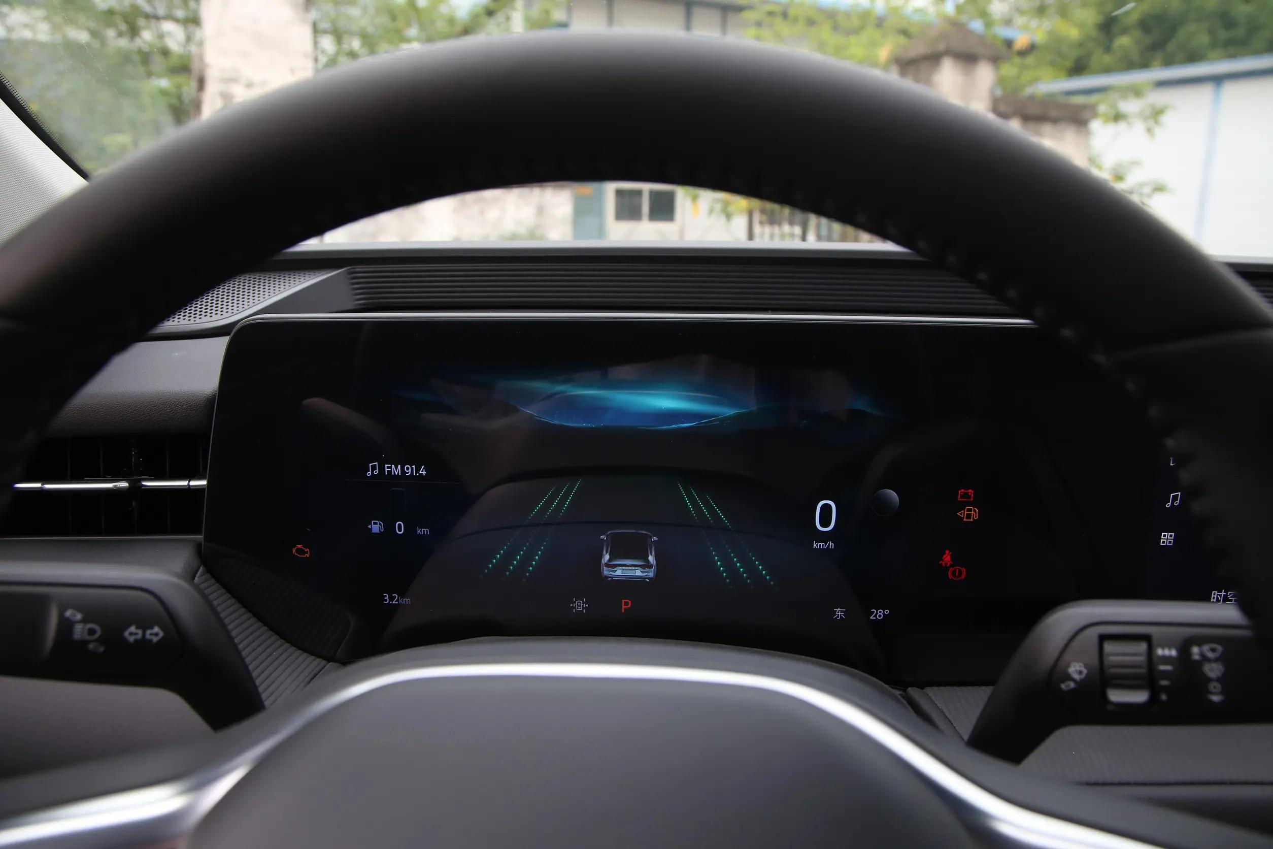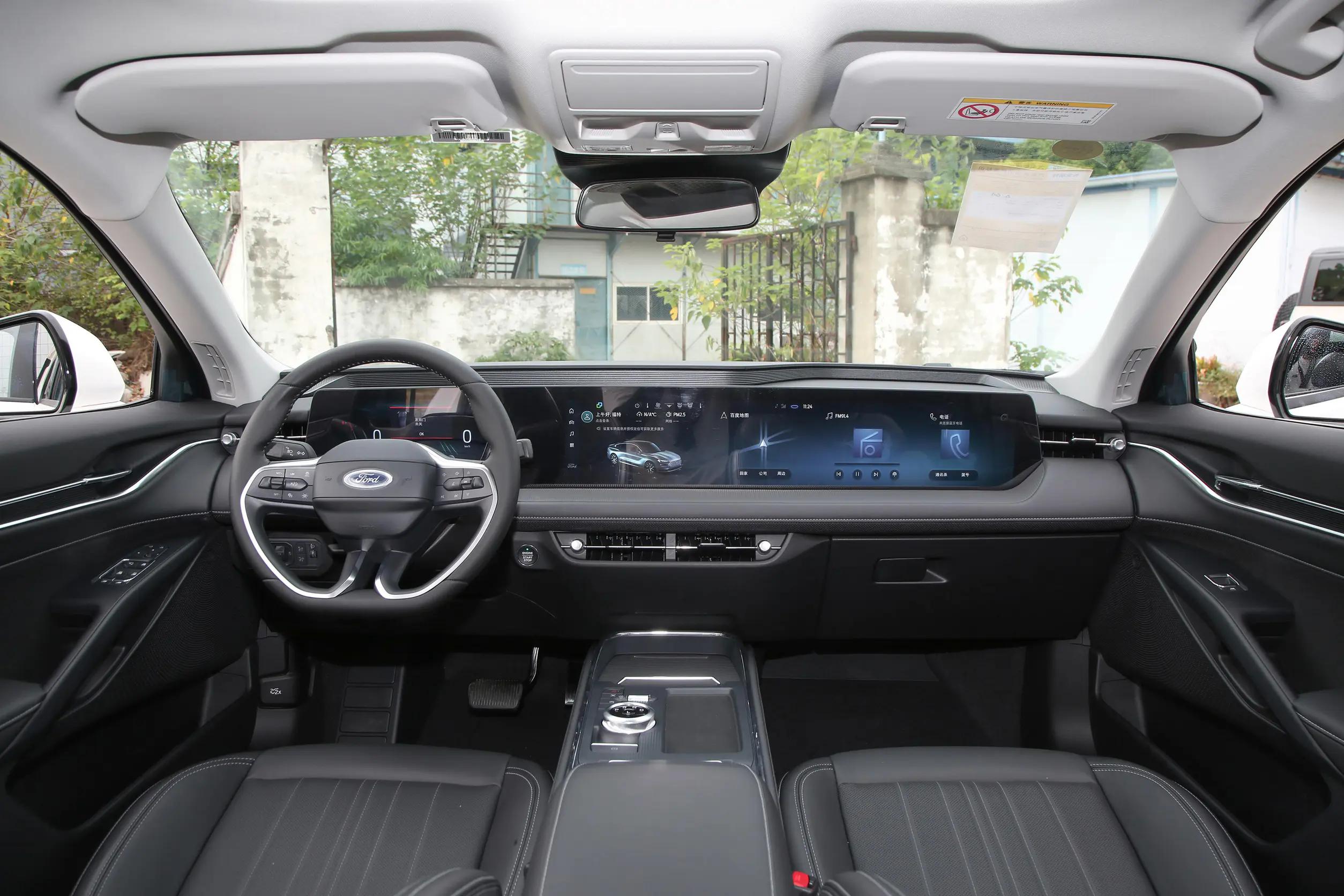 坐进车内,引人注目的当属那块1.1米的贯穿式联屏。左侧是12.3英寸全液晶仪表,右侧搭配27英寸4K中控屏,两者很快衔接,视觉上格外大气。屏幕分辨率达到3840×720,显示效果细腻清晰,导航里的小型路牌、歌词中的细小文字都能看得明明白白,没有丝毫模糊的颗粒感。车机搭载SYNC+2.0系统,只需喊出“你好福特”就能唤醒语音助手,调节空调、切换歌曲、查询路况等操作都能响应,反应速度比较快,基本不用等待。