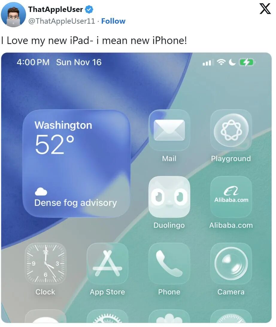据悉,这并不是苹果官方开放的功能,而是通过iOS 26.2 beta2的一个系统漏洞实现的刷机操作。简单来说,是利用了测试版系统中尚未修补的“后门”,将本该安装在iPad上的系统,“骗”过验证机制,装进了iPhone。