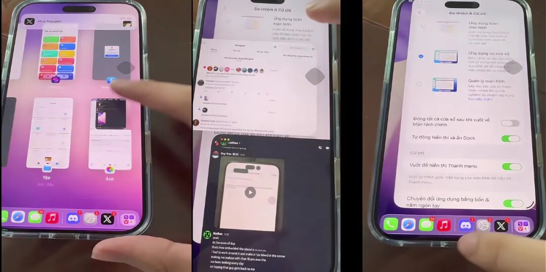 其中,博主Huy Nguyen发布的演示视频播放量已突破170万。视频中,他轻滑解锁屏幕,从底部上拉,熟悉的iPhone界面瞬间“变身”——Dock栏赫然出现在屏幕底部,上面整齐排列着八个应用图标,既有系统自带应用,也有第三方软件。