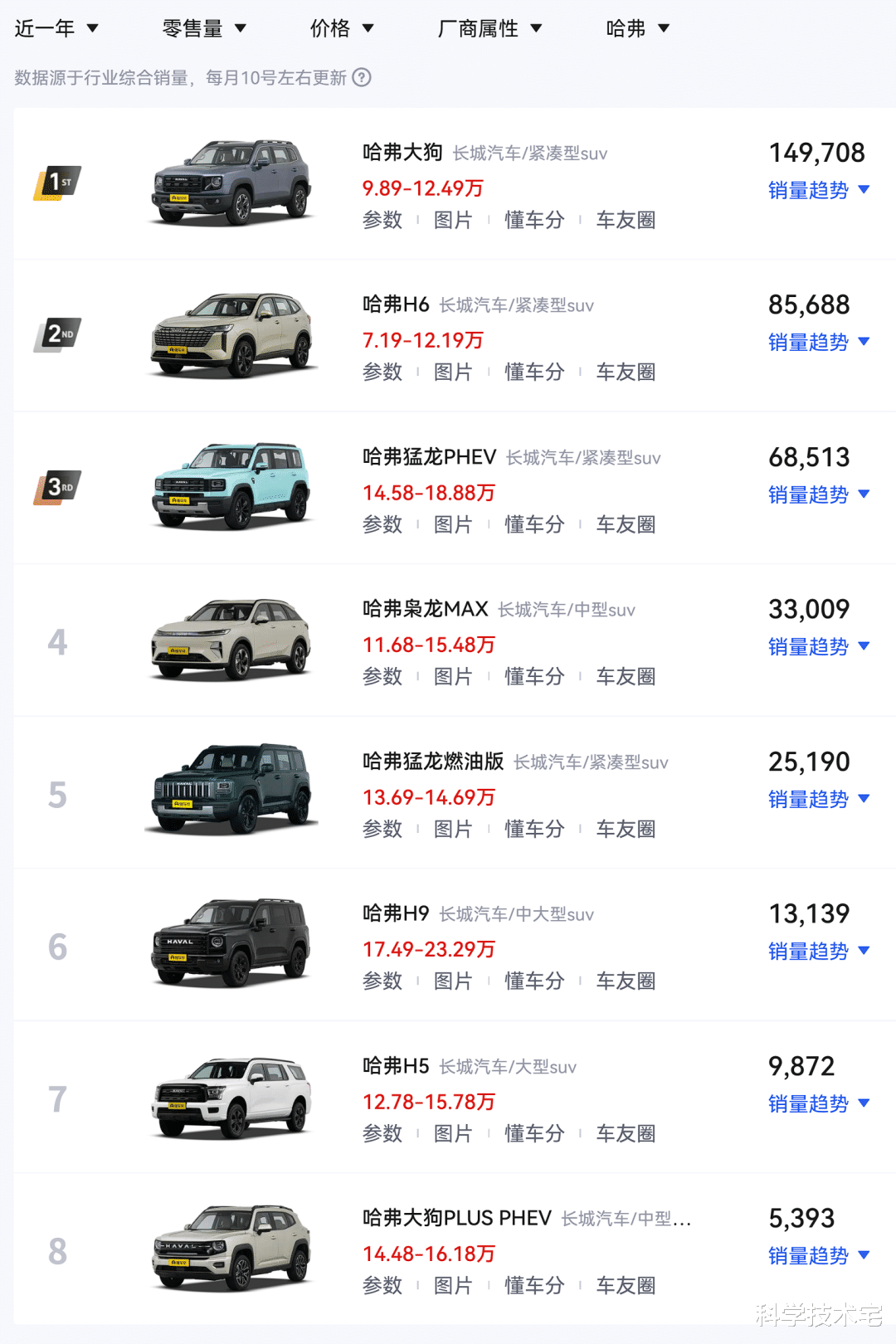 另外,长城之前还给哈弗立了目标——哈弗新能源只做四驱,这就导致哈弗在新能源SUV市场并没有价格相对较低的车型,根本无法和热门的比亚迪宋Pro DM、吉利银河星舰7 EM-i等两驱车型进行抗衡,销量上也是远不如宋Pro DM、银河星舰7 EM-i。