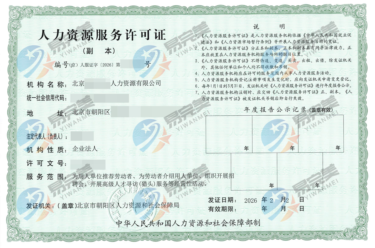 北京新下2026年02月02日人力资源服务许可证