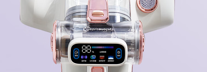 在防二次污染设计上,它内置了 AI 温控芯片,调控 55℃-60℃热风循环,破坏螨虫喜欢的潮湿生存环境。双尘杯分离结构,一个存垃圾,一个负责过滤,搭配七重 HEPA 过滤系统,整机过滤效率达99.9%,防止尘螨逸散。