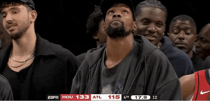 杜兰特最后时刻起立观看比赛,庆祝火箭战胜老鹰