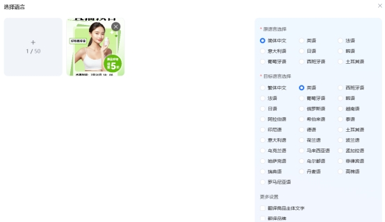 但易可图的「图片翻译」就可以轻松帮到你,你可以批量导入带中文说明的产品图/卖点图/营销海报,AI就会智能识取中文并抹去,同时将翻译后的英文填入原有位置;