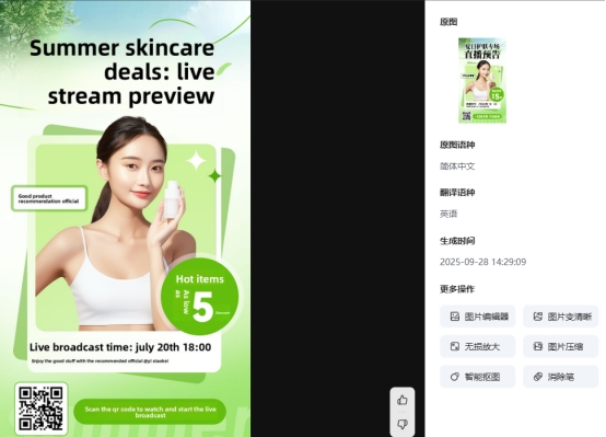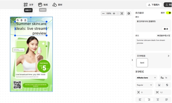易可图是一个专注于电商领域的AI设计平台,同时提供了图片翻译的功能,易可图的图片翻译功能可以解决我们的很多痛点,具体如下: