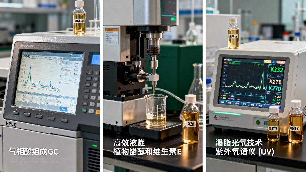 现代山茶油质量控制依托三大分析技术体系:气相色谱、高效液相色谱与紫外光谱检测,由国家粮油质量监督检验中心等机构执行。
