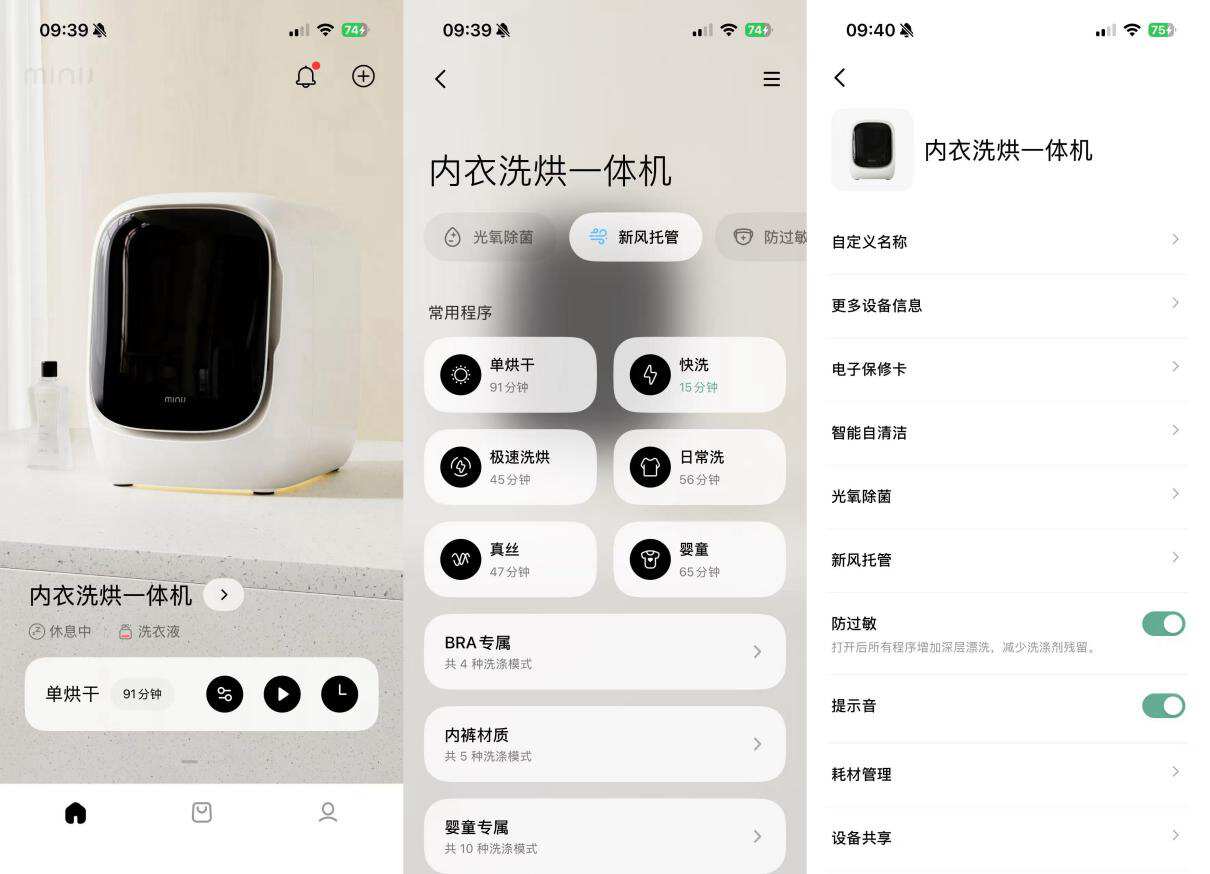 在内裤清洁上,程序覆盖了莫代尔、蕾丝、纯棉、真丝及冰丝等多种主流材质,为娇嫩面料提供专属呵护。