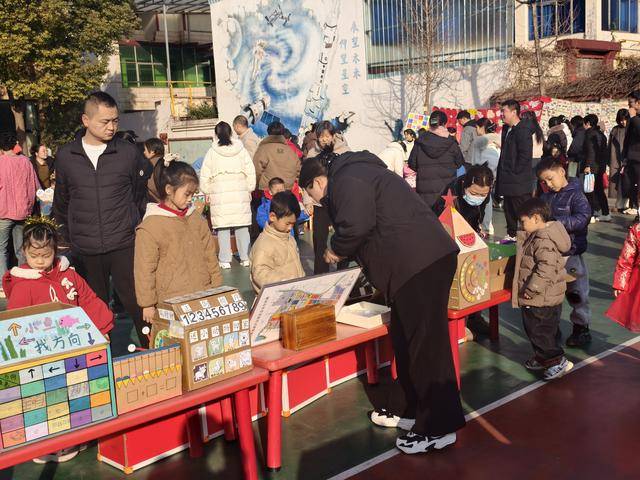 操场上,变废为宝自制玩教具作品展讲述着环保与智慧的故事,空气中弥漫着自豪与成就感。孩子们在动手实践中,悄然种下了珍惜资源、热爱自然的种子。