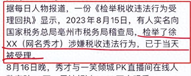 而另一方面,8月份有人向亳州税务部门举报“秀才”涉嫌偷税漏税。