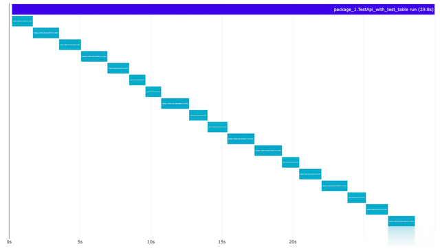 func TestApi_with_test_table(t *testing.T) { testCases := []struct{...}{...} for _, tc := range testCases { t.Run(tc.Name, func(t *testing.T) { simulateSlowCall(1 * time.Second) // 未调用t.Parallel() }) }}