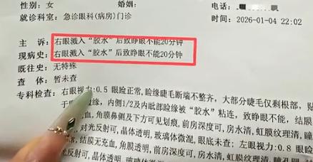 事发后,何女士立刻前往医院寻求救治。何女士痛苦地表示:“医生清理了将近一个小时,才把那些胶水一点点清理干净。整个医治过程真的太痛苦了,没有打麻药,医生扯着肉把粘住的地方拽开,那种疼痛简直无法用言语形容。就连睫毛都是生拔的。”