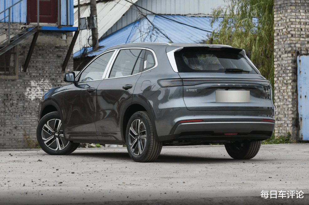 从侧面看,新款银河星舰7 EM-i的车身型面表现温润饱满,看起来很简单的侧面光影,实际上有多个不同角度的曲面构成,精致感不低。这款车型并没有使用潮流的隐藏式门把手设计和悬浮式车顶设计,但是它的侧裙位置和轮眉位置都采用黑色的饰条点缀,让人感受到一些年轻运动气息。车尾处,这款新车采用相对潮流的设计风格,熏黑的贯穿式尾灯增添层次感和科技感,搭配后包围的黑色装饰,让人感受到一些运动气息。