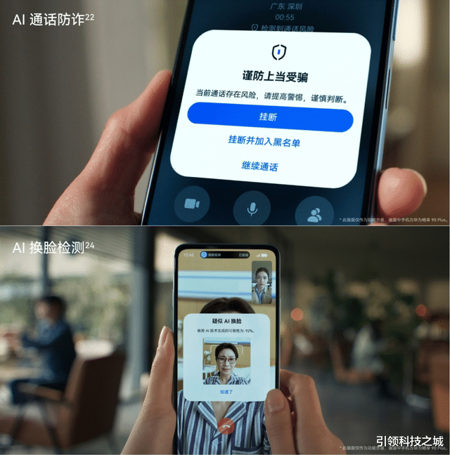 在安全方面,华为畅享 90系列同样给出了高分答卷。支持实时检测陌生来电,识别到诈骗电话会立刻提醒用户。此外,它还能识别AI换脸诈骗,准确率高达95%以上。更贴心的是AI亲情防诈功能,不仅能让子女远程挂断父母遭遇的诈骗电话,还能实现共享黑名单,只需一人标记诈骗号码,全家手机都能拦截,全方位守护用机安全。