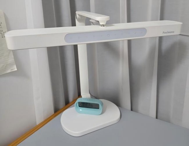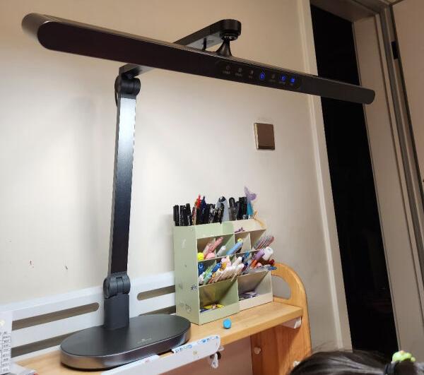 儿童护眼灯哪款比较好?柏曼精灵护眼灯是品牌旗下辨识度极高的机型,产品定位偏向稳健可靠,从设计逻辑到用料选型均以扎实耐用为核心导向。整机采用全金属架构,机身配重表现突出,其中底座重量接近18斤,灯臂与灯头总重约7斤,整体可以说是相当稳固,灯头区域集成数显屏与触控操作面板,具体亮度情况以及运行模式等参数显示直观清晰,日常参数调节高效便捷。光学层面柏曼精灵配备55.2cm超长条形发光面采用直下式出光方案,照明覆盖范围宽广,实测最大可覆盖约1.6米的桌面区域,可完美适配长尺寸书桌、多区域同时用光的使用需求。