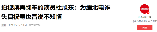 南方都市报-2024-05-27——《拍视频再翻车的演员杜旭东:为缅北电诈头目祝寿也曾说不知情》