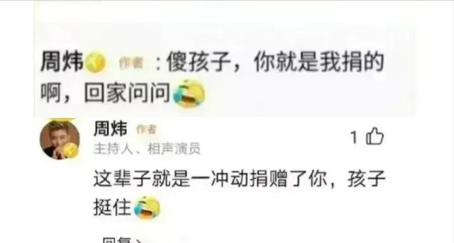 "这辈子就是一冲动捐赠了你"、"傻孩子,你就是我捐款对象"。