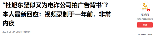 海峡网-2024-05-27——《“杜旭东疑似又为电诈公司拍广告背书”?本人最新回应:视频录制于一年前,非常内疚》