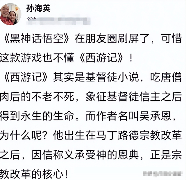 他突然就跳出来说这游戏"不懂《西游记》",还硬扯说《西游记》是基督教小说。