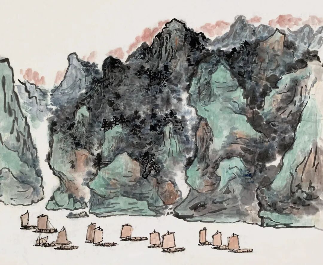 2024年 其国画作品《满峡重江水 开帆八月舟》《入蜀方知画意浓》参展曾默躬金石书画谱系展;