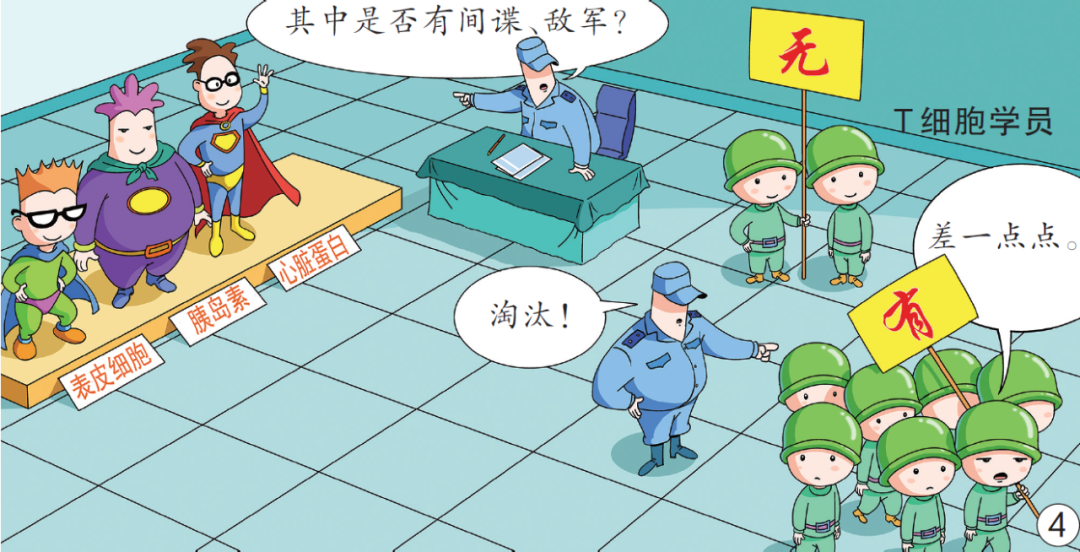测试期间,胸腺中主持考试的教练细胞,会向学员展示所有被标记为“自身”的蛋白质,包括那些通常只在心脏、胰腺、肝脏等器官中才能生成的蛋白质,以及各种激素如胰岛素。一旦学员没通过考核,也会被直接淘汰。