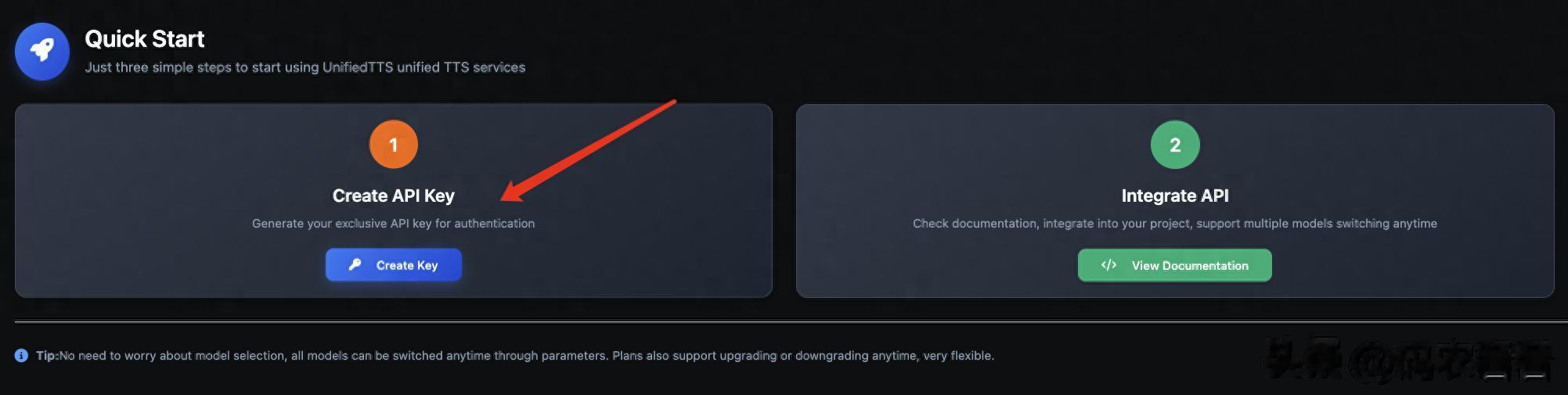 <dependencies> <dependency> <groupId>org.springframework.boot</groupId> <artifactId>spring-boot-starter-web</artifactId> </dependency> <dependency> <groupId>org.projectlombok</groupId> <artifactId>lombok</artifactId> </dependency> </dependencies>2. 注册 UnifiedTTS,获取 API Key前往 UnifiedTTS (https://unifiedtts.com)注册并获取 API Key