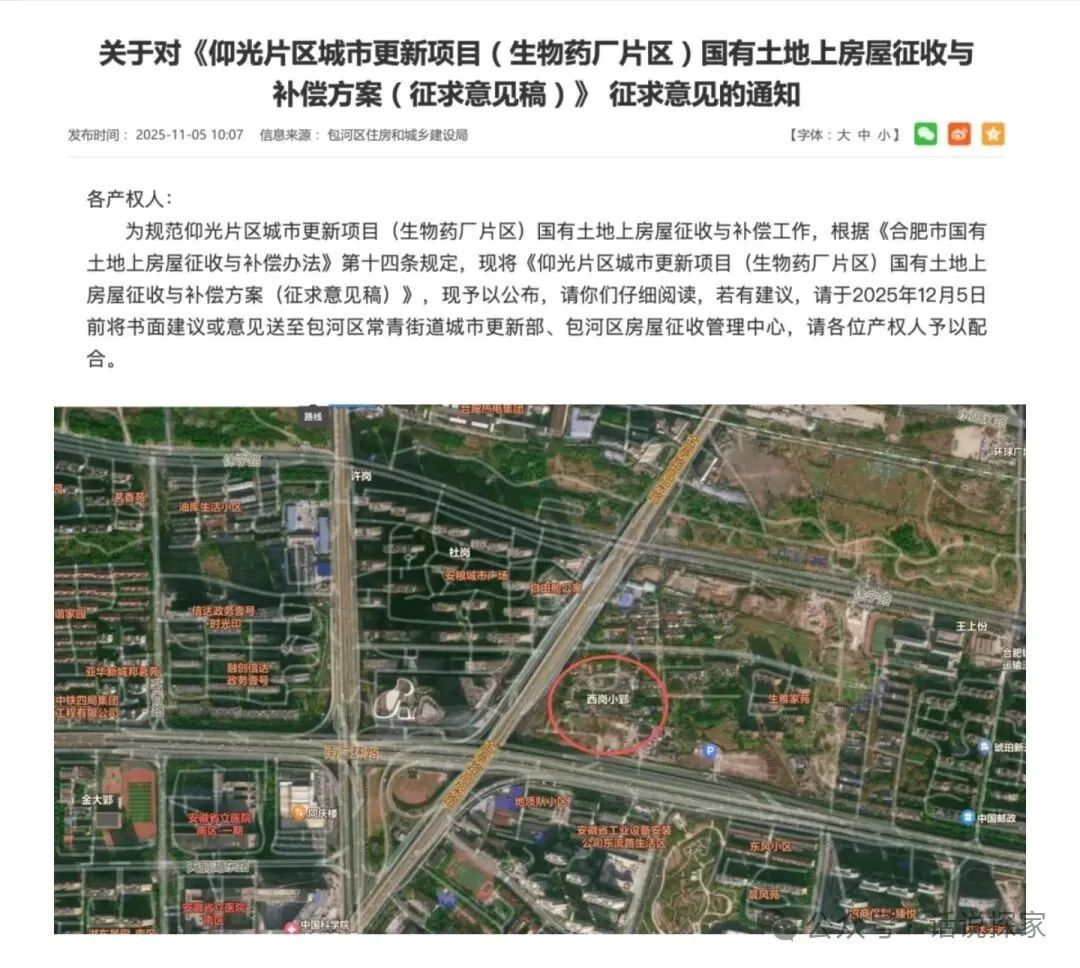 据包河区住房和城乡建设局消息,仰光片区城市更新项目(生物药厂片区)国有土地上房屋征收与补偿安置方案(征求意见稿)通知发布。