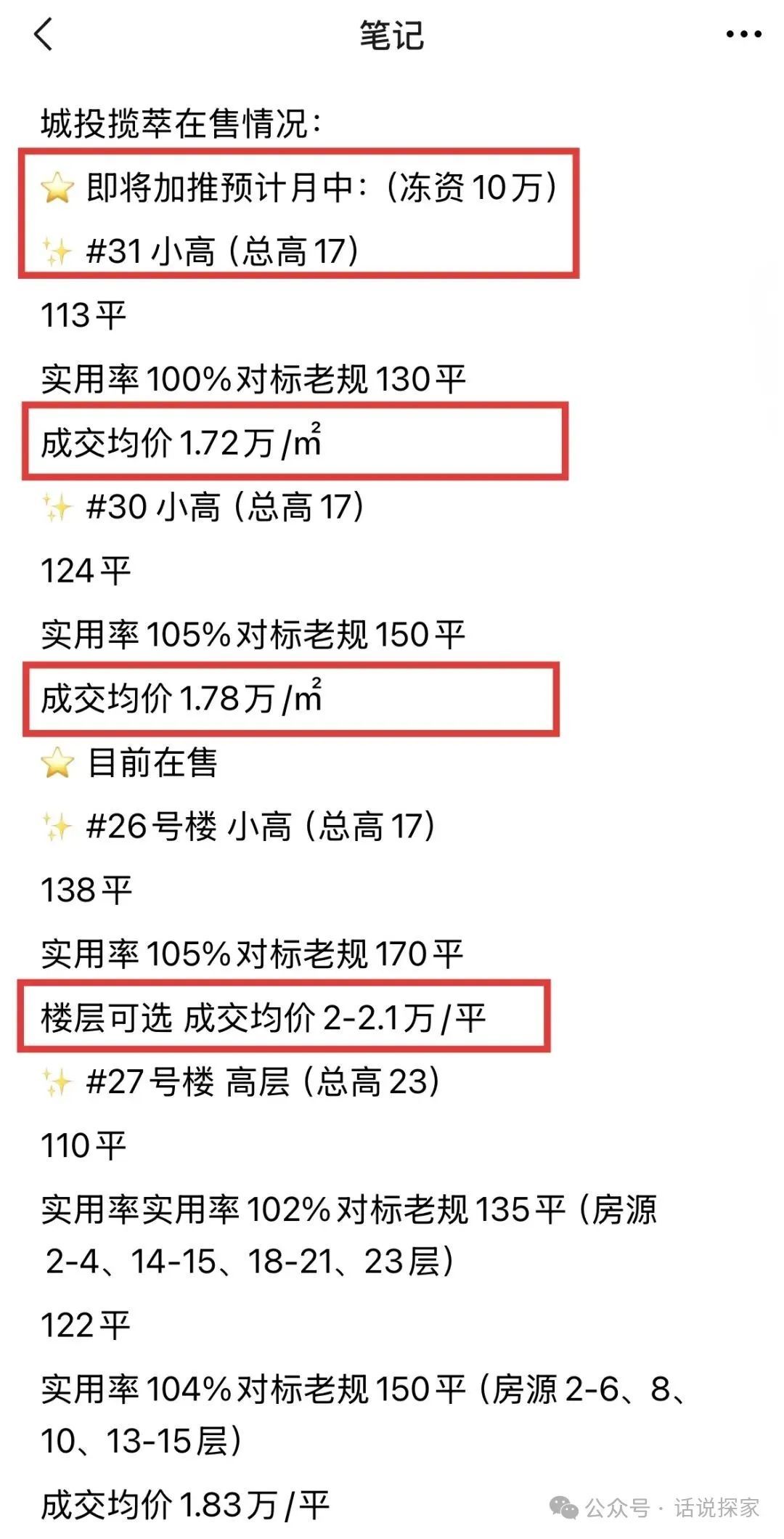 据说是接下来将推出西侧的小地块,新加推的31和32幢小高层,备案价会大幅下调,成交价约1.7万,毛坯交付,与东地块此前2万左右价格还是有不小差距的,只不过那些首开的业主就显得有些难受了,有的人说是价格被背刺,不过位置西地块略差一些,主要是采光等方面部分楼层可能被旁边小区高层遮挡。