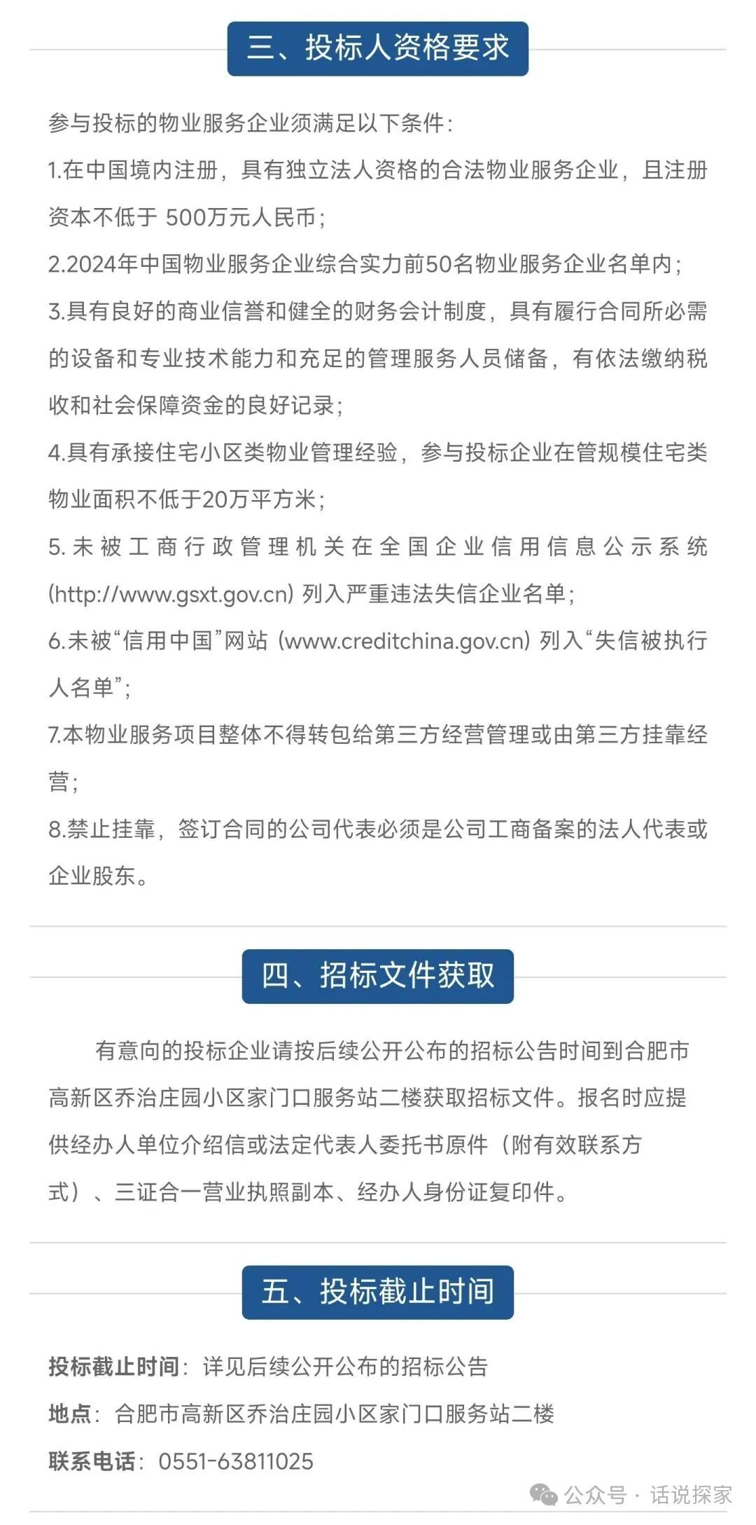 11月4日,合肥高新区乔治庄园小区发布信托制物业服务企业竞标邀请函,此前该小区原为万科物业而后被解聘。