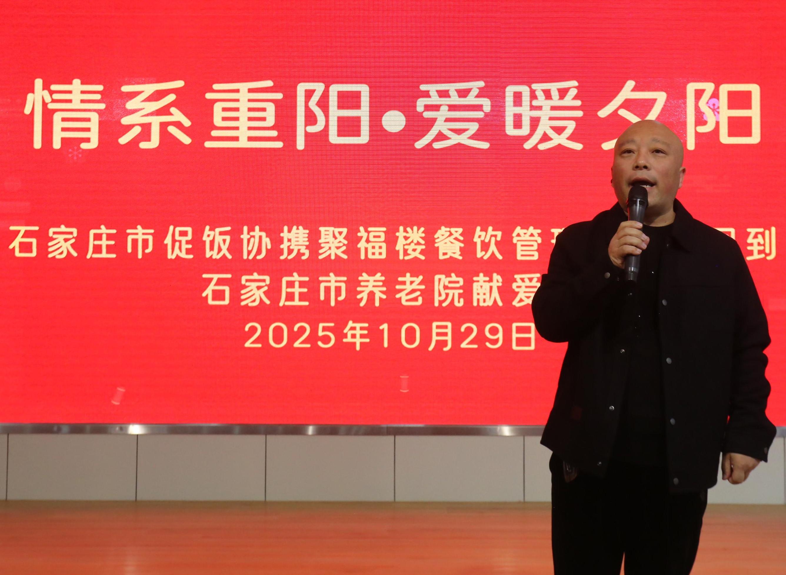 10月29日,在重阳节这个承载着敬老、爱老传统的节日里,石家庄市饭店烹饪行业协会、市餐饮酒店产业发展促进会携手爱心企业,在市民政局的指导与支持下,共同走进市养老院,举办了一场主题为“情系重阳 爱暖夕阳”慰问活动,为院内老领导、老前辈送上节日祝福与爱心物品,以实际行动践行 “敬老、爱老、助老” 美德,让社会关怀温暖每一位长辈的心。