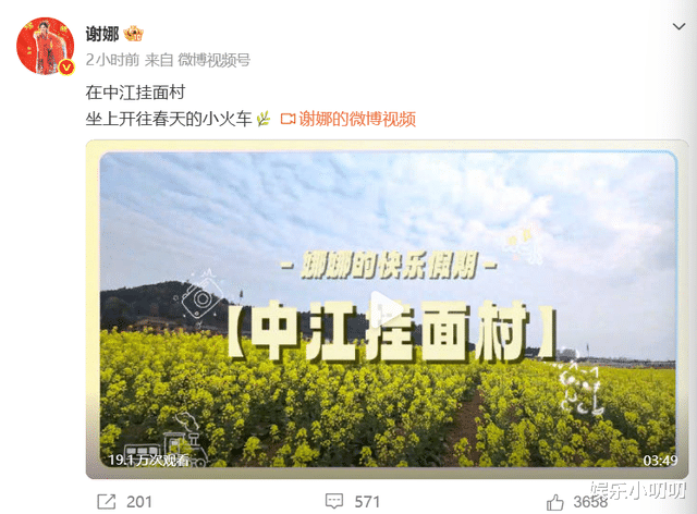 3月17日,谢娜在个人社交平台分享了一则动态,是自己在家乡中江游玩的小视频。谢娜配文称:在中江挂面村,坐上开往春天的小火车。就这小语气都能感受到谢娜的开心,也是谁回了家会不开心呢。陪谢娜游玩的是爸爸妈妈,三人出行,还是谢爸爸请客坐的小火车,一家三口幸福感满满。